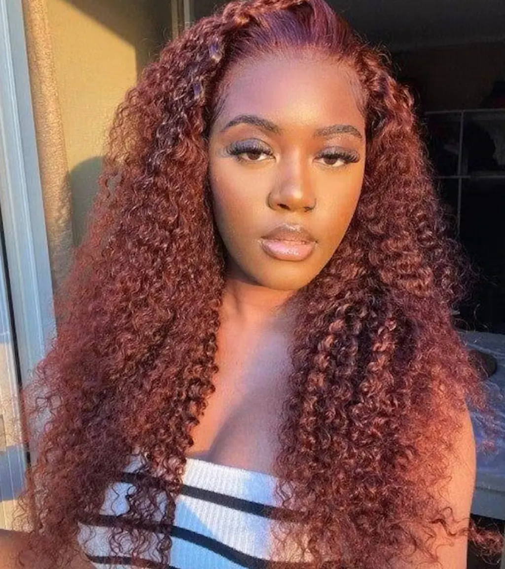 Dorsanee Reddish Brown Jerry Curly Wear Go Glueless 6x4 Pre-Cut Lace Closure Human Hair Wig