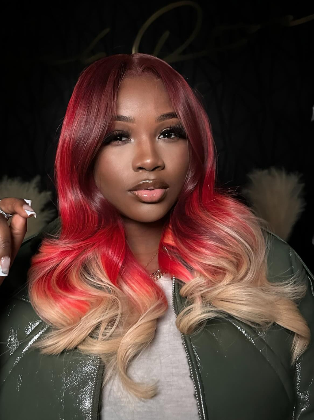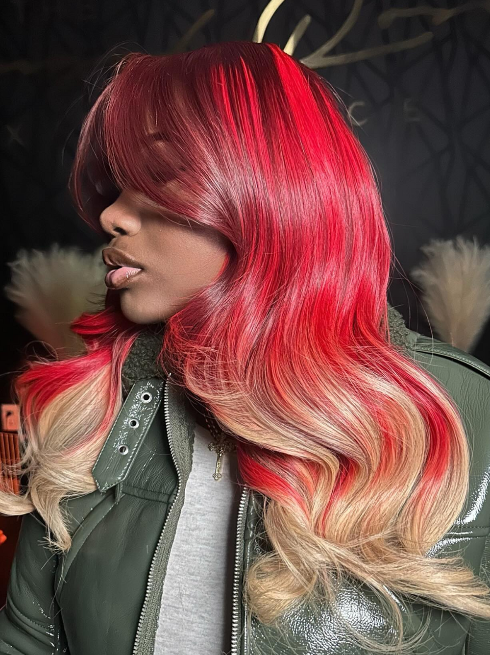 Dorsanee Ombre Chocolate Brown Platinum Blonde With Red Streak Highlights 13x4 Lace Front Human Hair Wigs