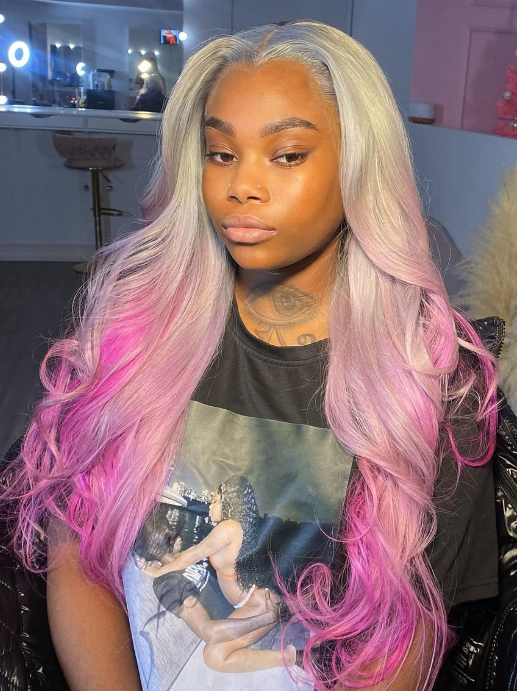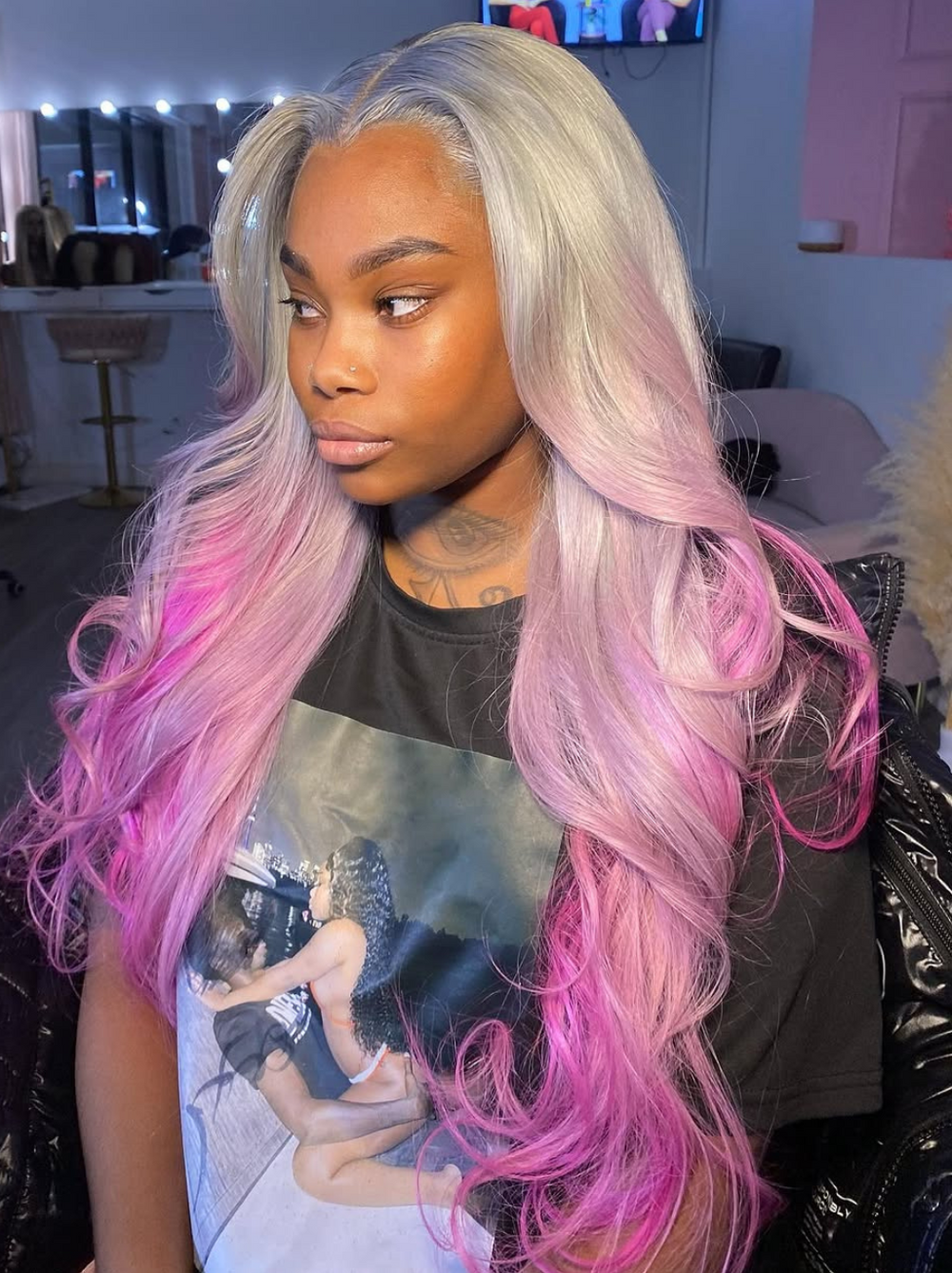 Dorsanee Ombre Gray Purple Lavender Wig 200 Density 13x4 Lace Front Body Wave Human Hair Wigs
